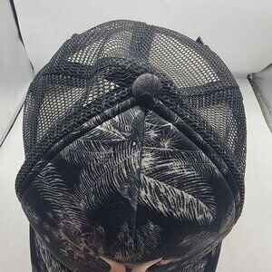Hurley Palm Tree Print Snapback Trucker Hat Black White Adjustable Cap Casual