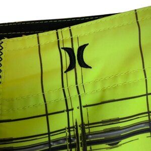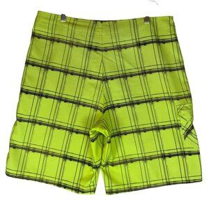 Hurley Phantom Boardshorts Mens XL Neon Yellow Black Plaid Drawstring Waist