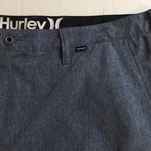 Hurley shorts size 38. These are a nice lightweight performance style polyester in a Heathered blue fabric. Measurements in photos. In excellent used condition. Side slip pockets on the front, and two back pockets on the back of the shorts.