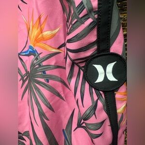 Embrace vibrant style with Hurley's pink tropical print shorts. Perfect for a sunny day out, these shorts offer comfort and flair.