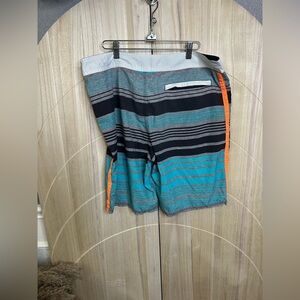 Hurley Phantom Orange Blue Striped Surf Swim Boardshorts 36