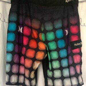 These Hurley Surf Trunks Board Shorts size 17.5" waist measurement feature a multicolor design and are perfect for the beach. These lightweight and quick-dry shorts have a pocket, a drawstring waist, and are machine washable. Ideal for swimming and surfing activities, these swim shorts are designed for recreational use with a beach and colorful theme.