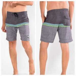 Hurley Phantom Baja Malibu Boardshort Gray Stripe Unlined Surfing Swim Shorts