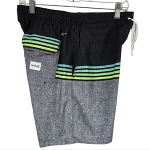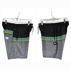 Hurley Phantom Baja Malibu Boardshort Black Stripe Unlined Surfing Swim Shorts