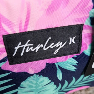 Hurley Pink and Green Tropical Cosmetic Bag with Leaf Design