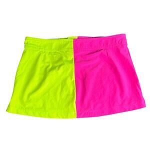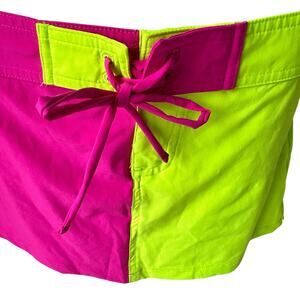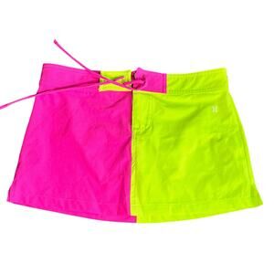Vibrant swim coverup by Hurley. Features a bold pink and neon green color block design. Adjustable tie for a perfect fit.