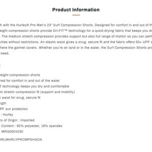 Hurley Pro 23” Compression Surf Tights Shorts Mens Size S 50+ UPF 2 Pack