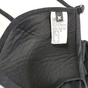 Pre owned excellent condition black Hurley bikini top with Ruched detail & string ties. Style # HU21133 RN 46664. Size M