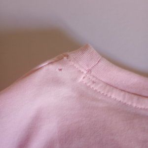 This shirt is in fantastic condition with apparent flaws. This piece has a hole in the crew neck. Please review the photos for specific details about the condition of this shirt.