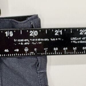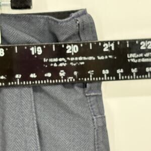 Two front slash pockets, two back welt pockets (button closure on back right pocket)