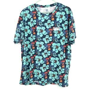 Hurley Size XL Short Sleeve Crew Neck T Shirt Blue Floral Print Tropical Tee Top
