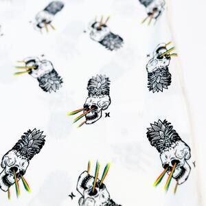 • Color: White with black skull and rainbow accent print • Material: 98% Cotton, 2% Spandex