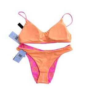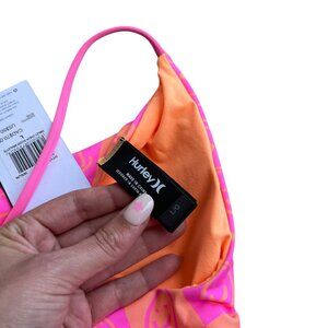 🌸 Hurley Smiley Checker Bikini Set L Neon Pink Orange Swim Top & Bottom