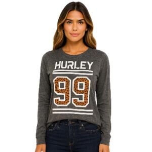 Keywords: Hurley cropped sweatshirt, burnout pullover, gray crop sweater, sporty streetwear top, vintage vibe sweatshirt, women’s casual hoodie alternative