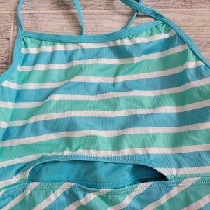 Hurley Swim Suit Girl's 10/12 One Piece Blue/Green Striped Swimwear NWT
