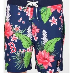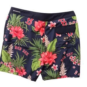 Hurley Swim Trunks MLB BOSTON RED SOXS Mens 33 BLUE Tropical Floral Board Shorts Phantom TG Vacation Hot Tub Surf Beach Hawaii Island Travel Surt