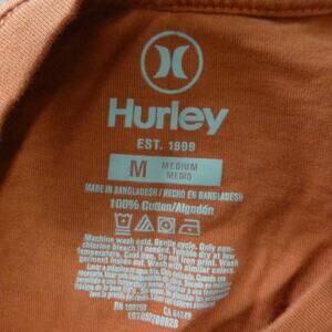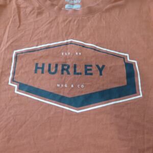 Hurley T Shirt Mens Medium Brown Graphic Skater Beach Short Sleeve Crew Neck. Good preowned condition. Color is a reddish brown. See pics for measurements and details.