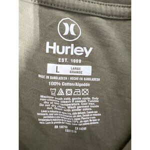 Hurley T Shirt Size Large Surf and Enjoy Graphic Tee Short Sleeve Olive Cotton