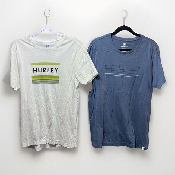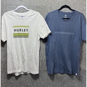 Hurley T Shirts Large Mens Blue White Short Sleeve Bundle Of 2 Graphic Tees