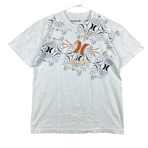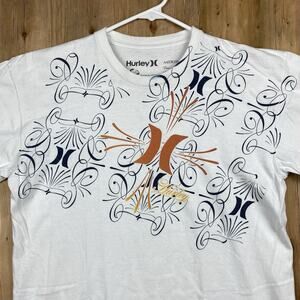 Hurley T-Shirt Medium White Graphic Tee Swirl Print Y2K Skater Surf Regular Fit