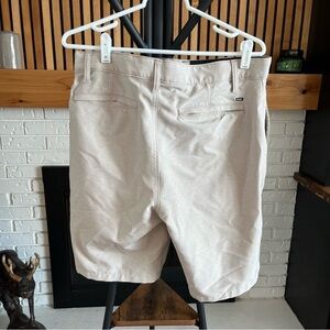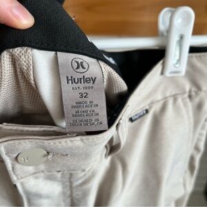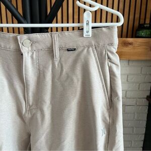 These Hurley shorts feature a flat front design and are made from a light tan fabric, offering a tailored and structured look. With a knee-length cut, they are ideal for both casual and semi-formal summer occasions.