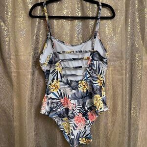 Hurley Tropical Hideaway Leaf Floral Print One Piece Swimsuit Large