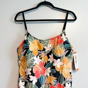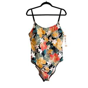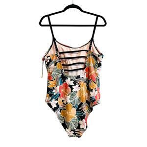 Hurley Tropical Large Floral Strappy Back 1 Piece Swimsuit NWT Size XXL UPF 50