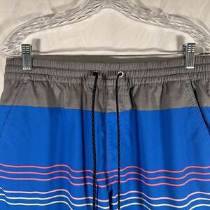 Hurley Trunks Men's Medium Grey Blue Striped Pull On Drawstring No Lining