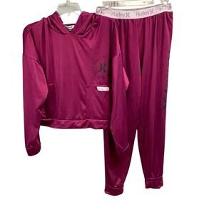 Great condition womens Hurley two piece set, great base layer has elastic waist pull on pants with hooded top.