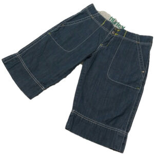 Hurley Vintage Junior's Blue Mid Rise Button Zipper Front Cotton Bermuda Short
