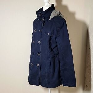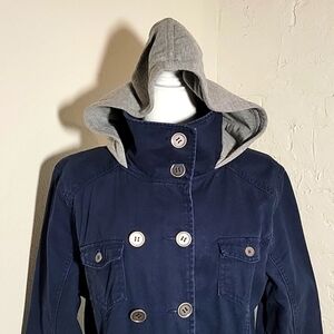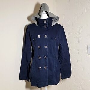 Hurley Winchester Woven Jacket Coat Hoodie Hooded Zip-Up Button Navy Blue Gray L