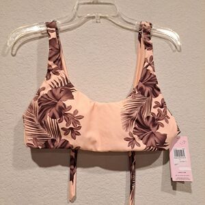 Hurley Womens Bikini Top Hawaiian Lei Max Soft Strap Nude & Brown Floral Sz L