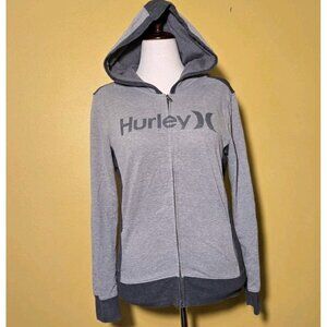 Hurley Womens Grey Zipped Hoodie Medium Logo GTHZCABB Pockets Grommets Vintage.