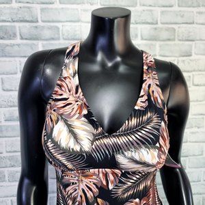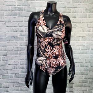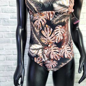 Hurley Womens S Scattered Palm Colorful Monstera Leaf Pattern One Piece Swimsuit