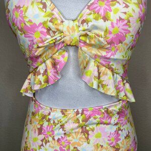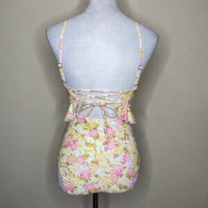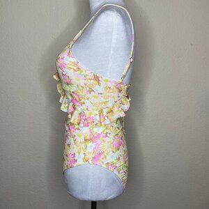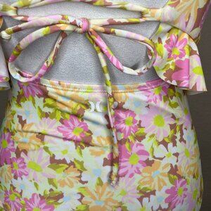 Hurley Women's Tropical Floral One Piece Ruffle Cut Out One Piece Swimsuit M