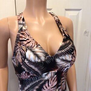 Hurley Womens Tropical Scattered Palm Print One Piece Swimsuit Size XL. Excellent, clean condition. From smoke free home. *clipped on mannequin.