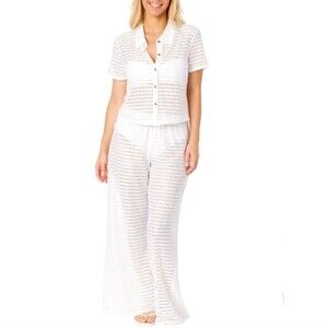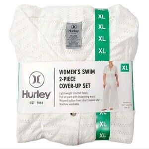 Hurley Women's XL Wide Leg Mesh Swim Cover Up Pant + Button Up Top Set White NWT