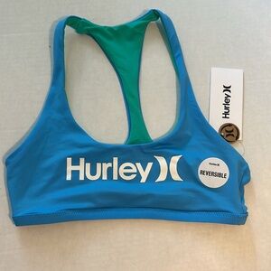 Hurley XSmall Top Bikini Skyline Blue Logo Reversible to Green Solid Scoop NWT
