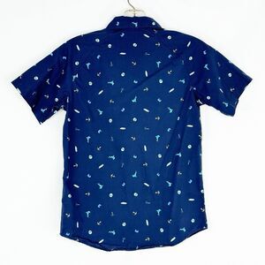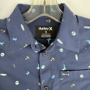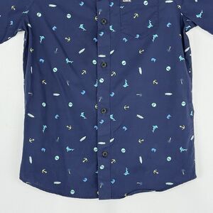 Hurley Youth Boys Small Shirt Short Sleeve Button Up Blue Allover Print Shark