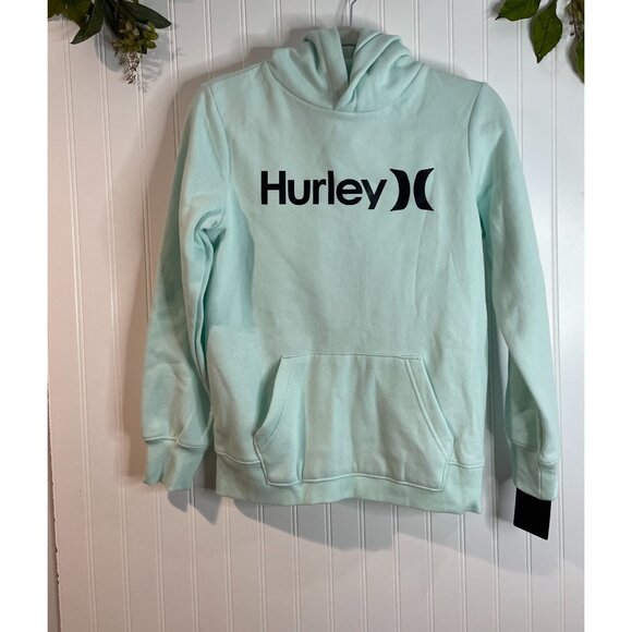 Hurley Youth Large Mint Green Hoodie Sweatshirt With Front Pocket & Logo Design