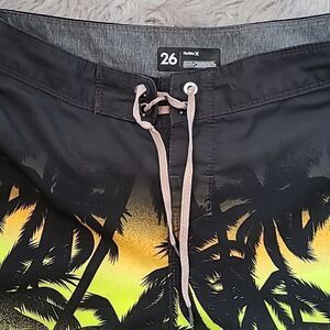 Hurley boys black, yellow and gray tropical board shorts size 26