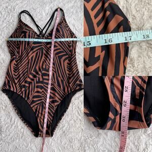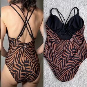 Hurley geometric print bathing suit one-piece strappy black brown animal XL