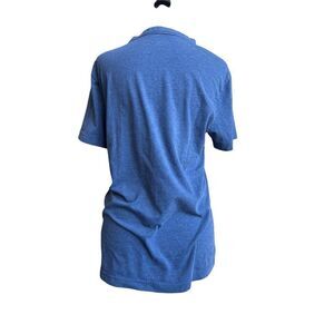 Blue graphic tee. Some peeling