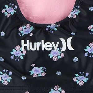 Chic black bikini with purple floral design. Offers UPF 50+ sun protection.