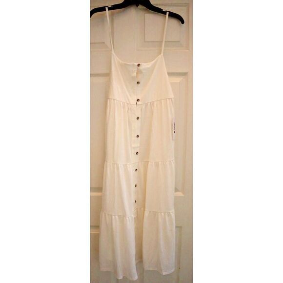 Hurley HC0084 Women Sz M Cream Solid Button Front Tiered Midi Cover Up Dress
