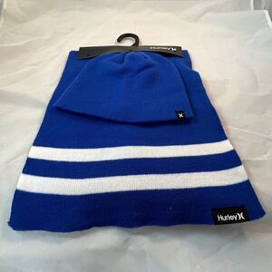 Hurley Hat & Scarf Set Blue White Stripes Beanie Unisex Casual