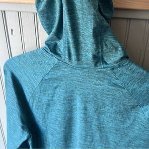 Tag says color is green looks more like a bluish green Spacedye stretch jersey