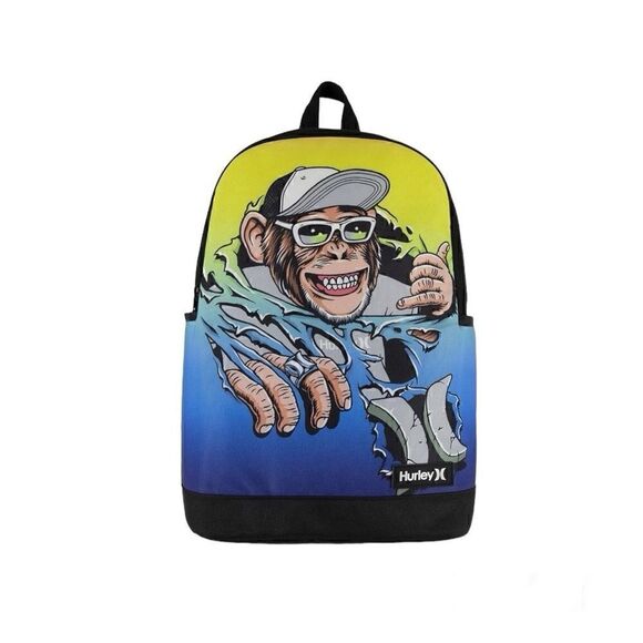 This listing is for a Hurley One and Only Backpack is a classic design with a colorful Hurley twist. It features a large graphic print with panels that wrap around the lower sides for a look that stands out. The large main zippered compartment has a padded laptop sleeve, the bottle pocket on the side will help kids keep up with hydration goals and the padded back and adjustable straps create a comfy fit. Made from Polyester fabric with PU coating
