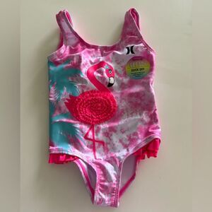 Hurley Pink and Teal Flamingo Swimsuit, NWOT, 3T