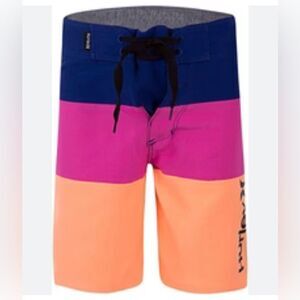 Add a splash of color with these Hurley shorts. Bold navy, magenta, and orange design. Perfect for active days. Selling 2 pairs; both size 18/29 They will fit men size 29 waist